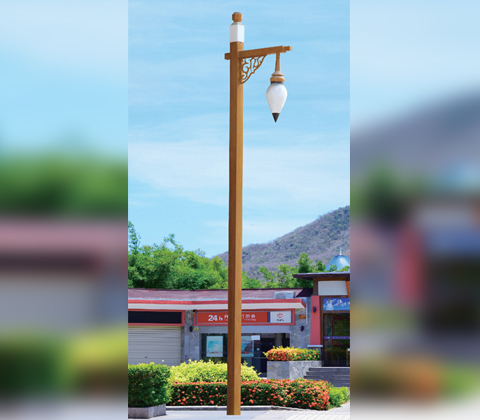 3-5米仿古木紋漆單頭庭院燈